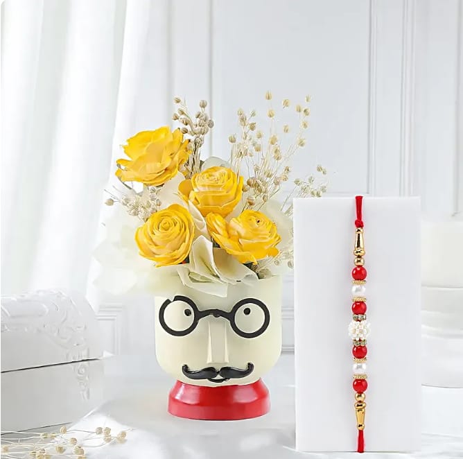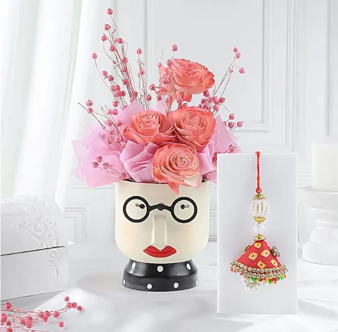 Meenakari Love Bond Rakhi N Serene Roses Vase Rs 1449